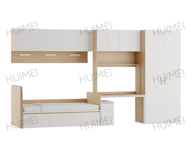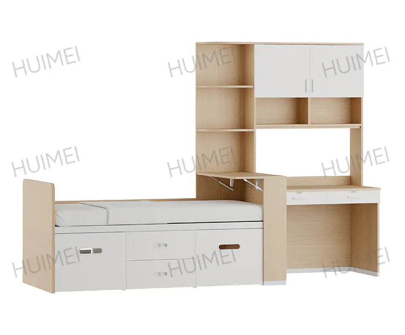 Самое большое преимущество двухъярусной кровати со столом под ней (также известной как «кровать»). Многофункциональная комбинированная кровать ") заключается в концепции "вертикального зонирования пространства". Он объединяет спальную зону (верхнее спальное место) с кабинетом и зоной хранения (нижний стол и шкаф), обеспечивая независимую функциональную планировку «один человек, одна зона». Такая конструкция особенно подходит для стандартных университетских общежитий на 4-6 человек, обеспечивая каждому студенту относительно приватное личное пространство, сохраняя при этом общую яркость и открытость общежития. Для общежитий с ограниченной площадью это модель повышения эффективности использования пространства.